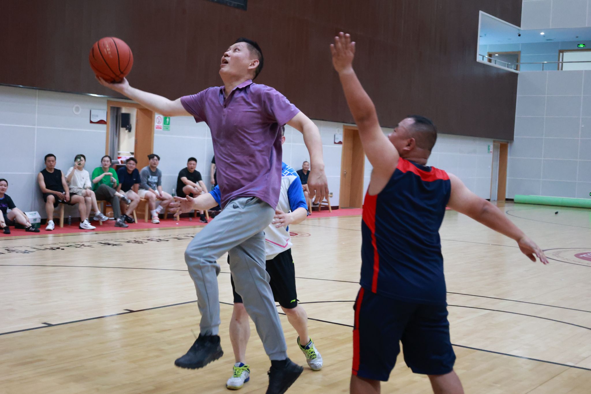 活动压轴环节——教师三人篮球交流赛热烈展开。各队精神饱满、配合默契,在激烈攻防中展现拼搏精神与团队风貌。赛场上的奔跑、传递与得分,不仅强健体魄,更增进了友谊与信任,提升了团队凝聚力与战斗力,生动诠释了健康生活、积极工作的理念。