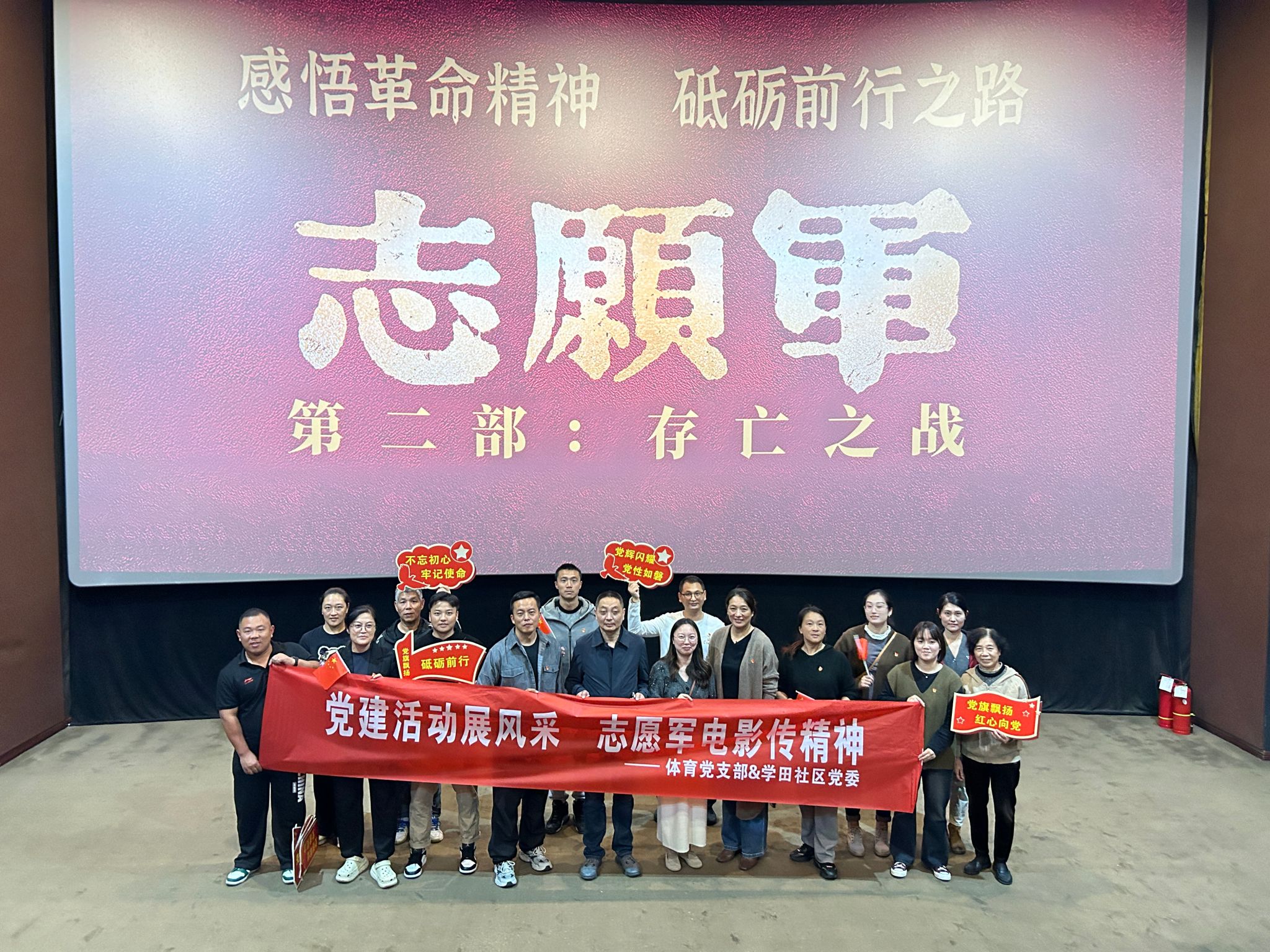 此次红色观影主题党日活动不仅加深了体育党支部与学田社区党委之间的合作与交流,更是一次深刻的精神洗礼,激发了大家的爱国情怀和奋斗精神。党员们纷纷表示,赓续红色血脉,汲取拼搏力量,立足本职岗位,锤炼自身本领,将以更加饱满的热情和更加坚定的信念,为实现中华民族伟大复兴的中国梦贡献力量。(体育部 石磊/图文 韩大帅/推荐 顾晓梅、吴春成/审核)