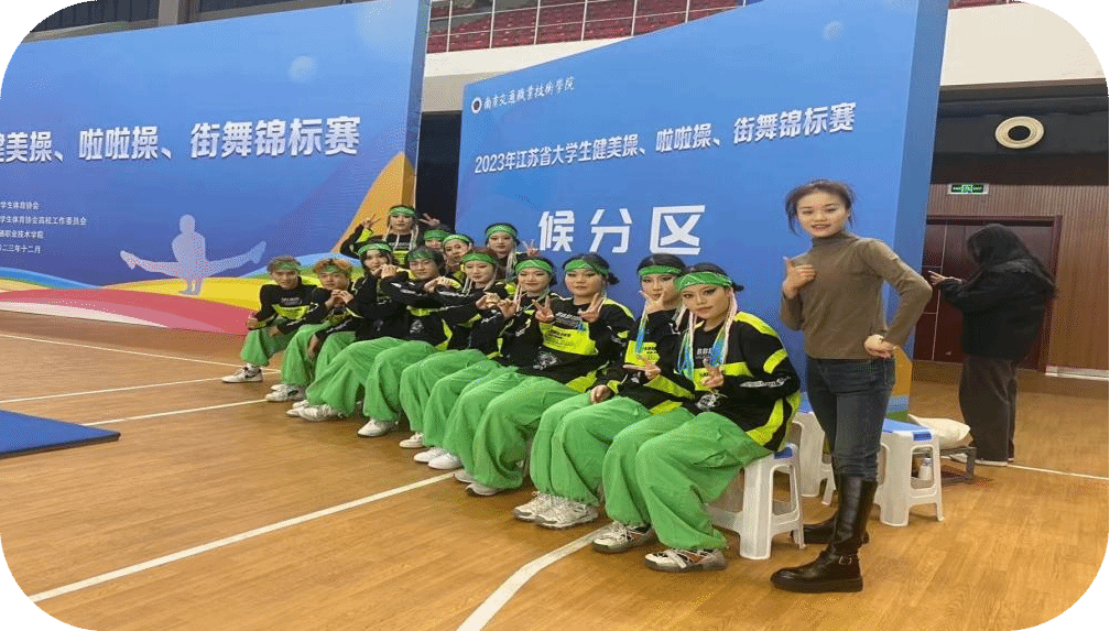 社团荣誉:DATW街舞校队是校内极具影响力的社团,多次参与校内的各项汇演活动。同时,DATW街舞校队专业技能扎实,曾在2023年的4月获得南通站全国啦啦操俱乐部比赛中获得了二级规定动作的第一名。在2023年江苏省大学生健美操、啦啦操、街舞锦标赛的比赛中荣获了两项团体第一、一项双人街舞第一、一项双人街舞第三的佳绩。