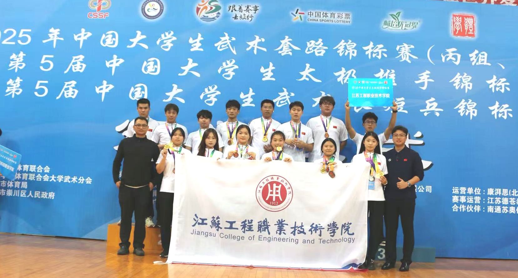 10月25-31日,2025年中国大学生武术套路(丙组、丁组)锦标赛、第五届中国大学生武术长短兵锦标赛及中国大学生太极推手锦标赛在南通举行。我校选派14名运动员参加了推手实战、推手对练和太极球三个大项的比赛,最终以绝对优势蝉联高职普通组男子团体和女子团体双项冠军。