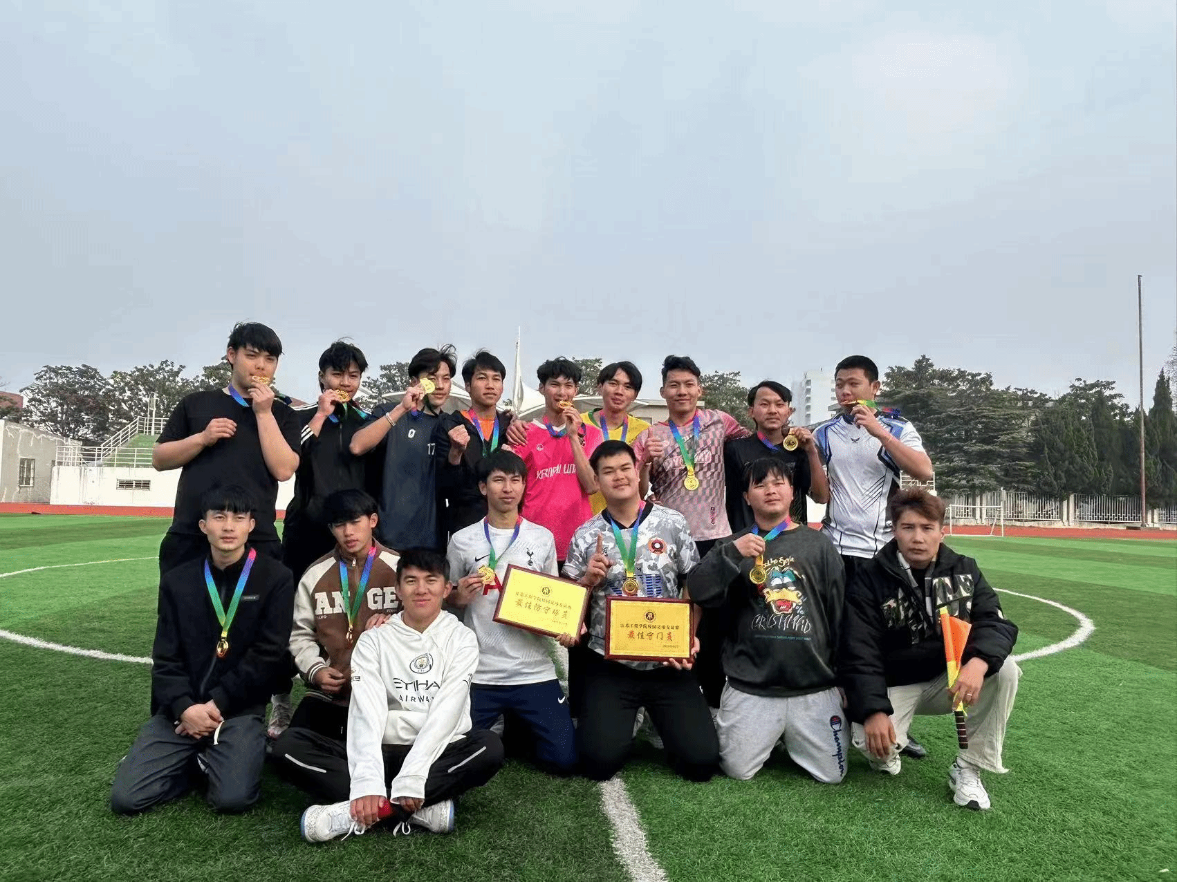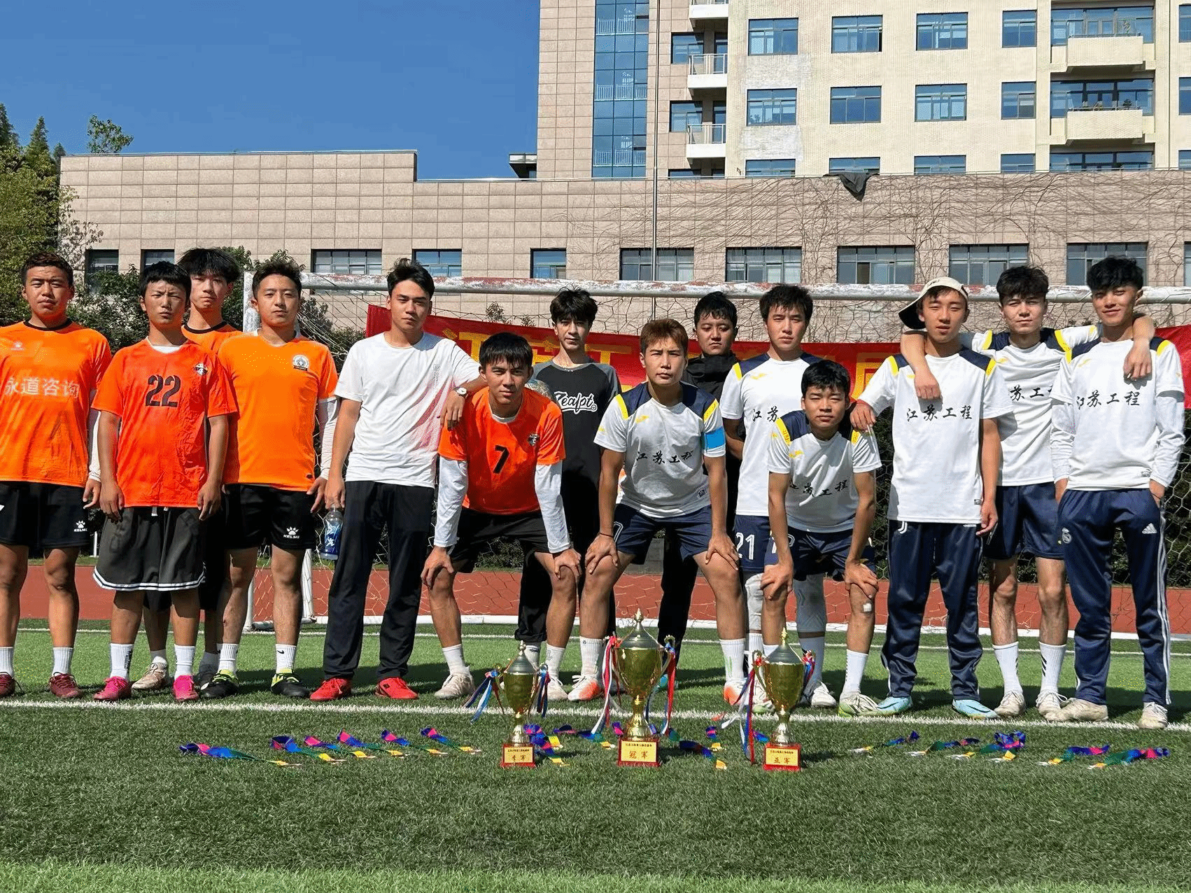 考虑到热爱足球的女孩子们,我这团开展了小场地比赛。此外,社团每年都很组织参加“省长杯”男子足球联赛,怀揣着对足球的热爱,秉持着对团队的信任,队员们带着浓浓的拼搏精神,荣获“省长杯”高职高专组三连冠!