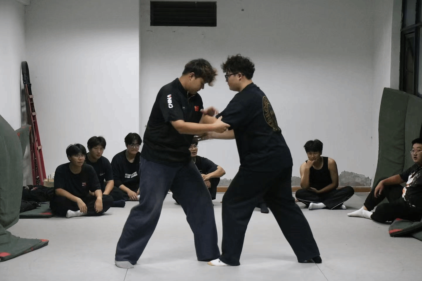 本次比赛设置多个公斤级别,覆盖不同年级、不同基础的参赛学子。赛场上,选手们凝神聚气、步法稳健,时而弓步前探、时而虚步防守,双手在攻防转换间展现着太极 “以柔克刚、借力打力” 的核心要义。既有初次参赛的新生略显青涩却毫不怯场,在对抗中认真揣摩技巧;也有经验丰富的老生沉着应对、攻防有度,用精湛技艺赢得满堂喝彩。选手们在进退之间相互试探、彼此配合,既展现了竞技的张力,更传递着相互尊重的体育精神。赛场边,观赛学子时而为精彩的攻防转换欢呼雀跃,时而为选手们的顽强坚持鼓掌致意,加油声、呐喊声汇成了校园里最动人的青春乐章。