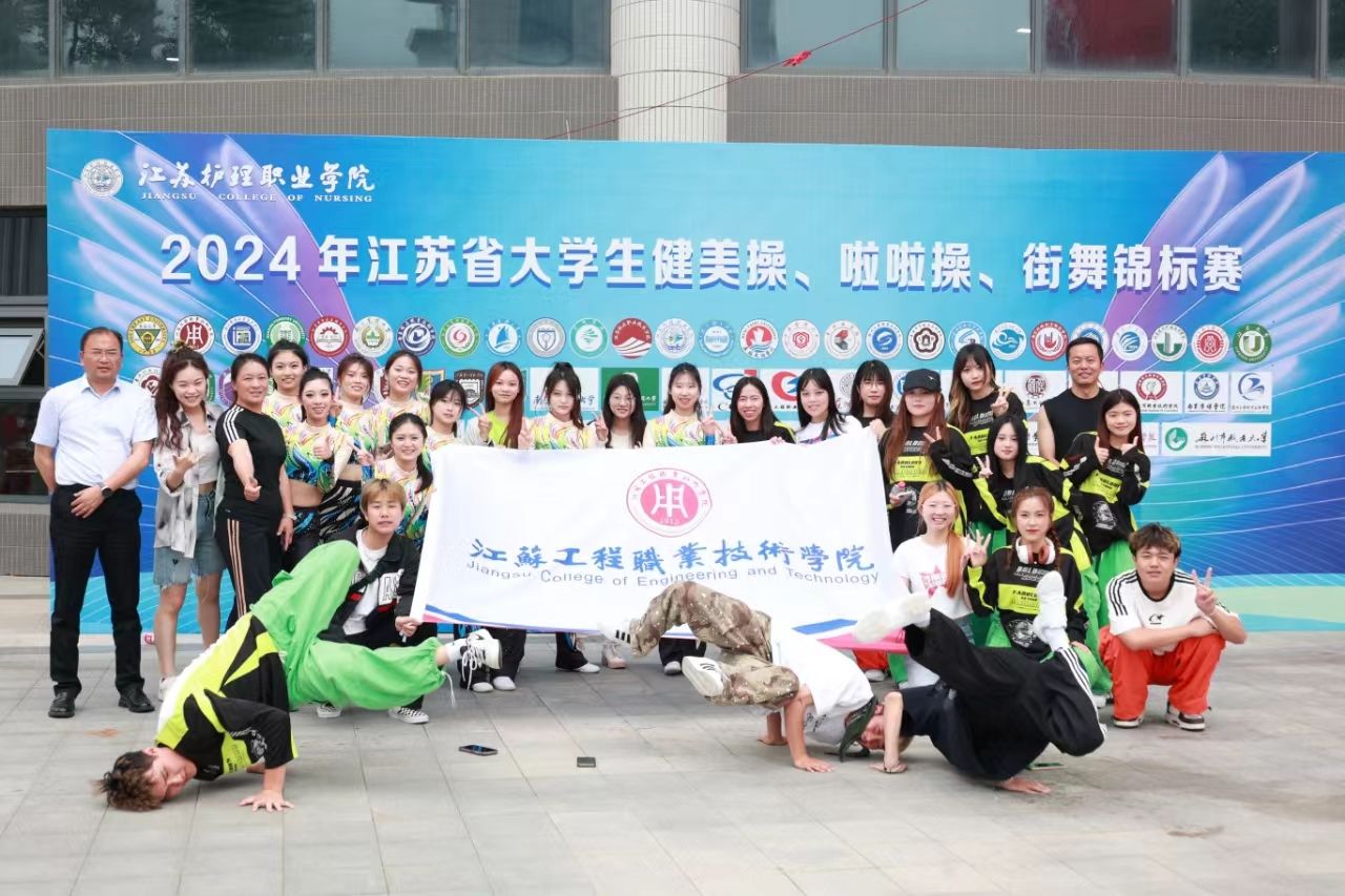 本次比赛在5月24日至26日于江苏护理职业技术学院举行,本次比赛共有64所院校的1500余名运动员参赛,我校街舞和健美操队在领队吴春成主任带领下,田晶晶、张玉香两位教练的悉心指导下,以卓越的竞技状态和默契的团队配合,征服了评委和观众的心。