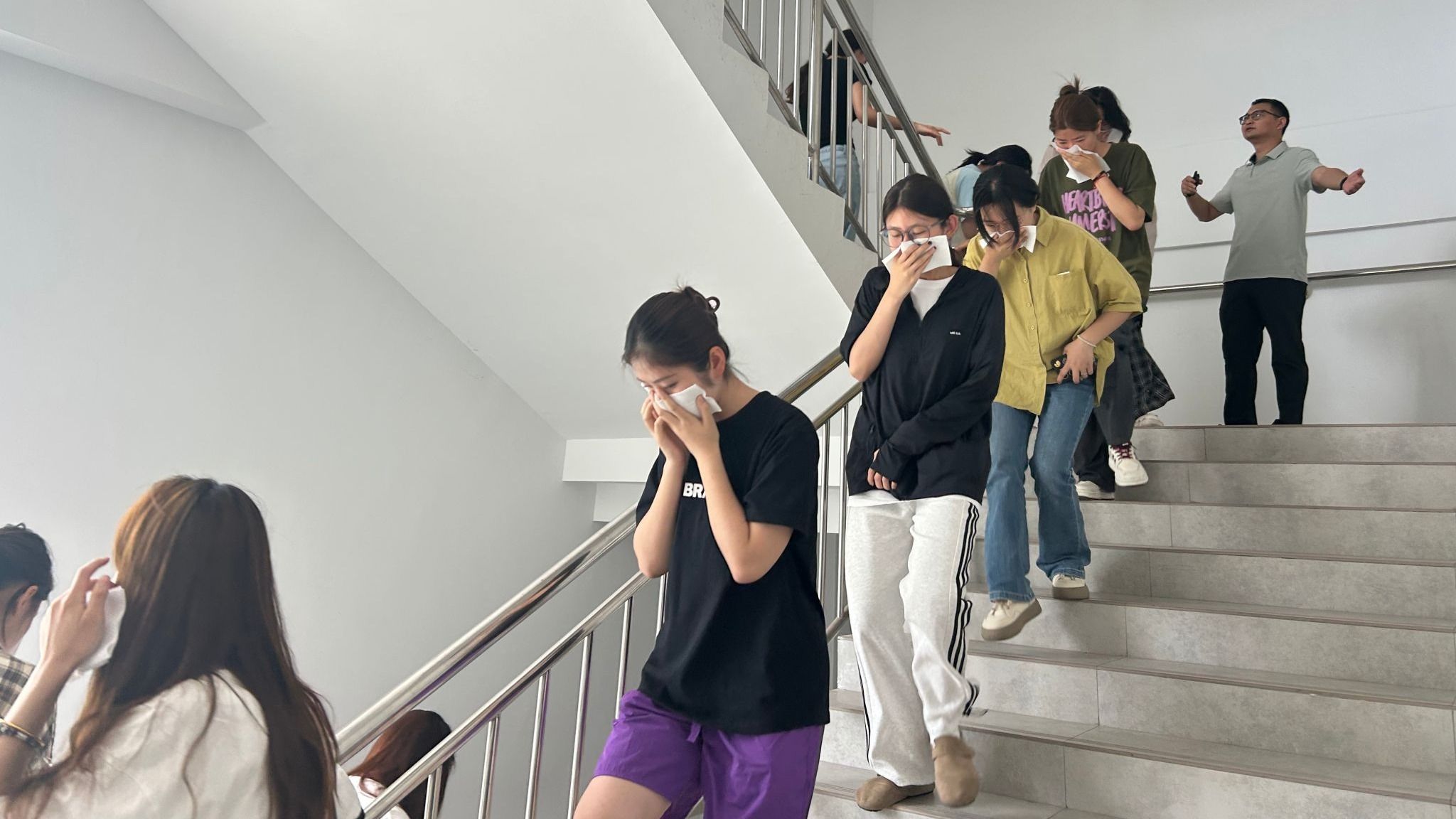 演练开始前,安全与保卫处副处长朱晓虎为师生进行了消防安全教育培训,详细介绍了不同情况下火灾应急处理和逃生技能等方面的知识。随后,体育部师生在日常教学场地待命。接到预警信息后,各应急小组人员分工合作,组织师生迅速疏散撤离。全体师生按照预案规定的就近疏散路线和“火场”逃生疏散演练技巧,用湿毛巾捂住口鼻,低姿通过安全出口,撤离到室外指定集合地点,然后由教师集合清点人数,整个演练过程安全高效、井然有序。